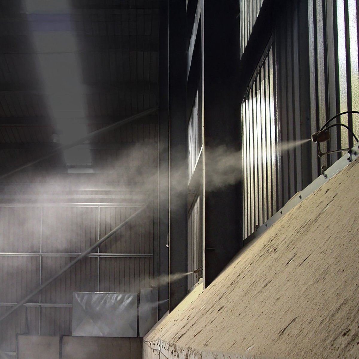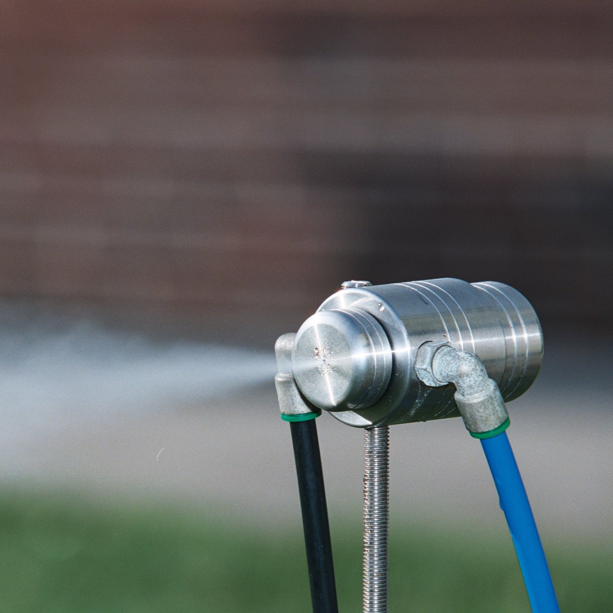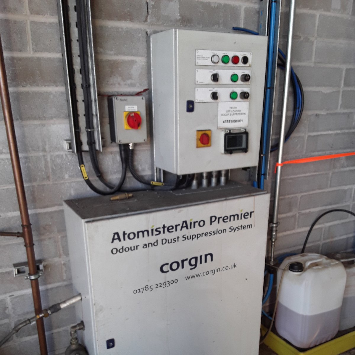 Manually-operated control box with pumped water supply, air and water pressure regulation, 316 stainless steel atomisers, and automatic dilution of odour neutraliser concentrate. |