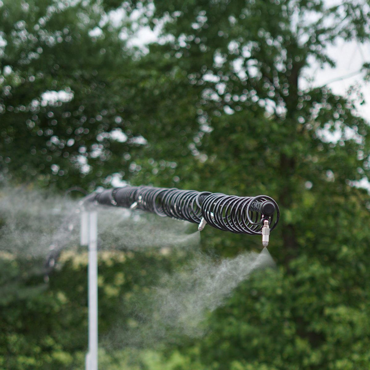 The water consumption of an OdourScreen is up to 54 litres/hour, meaning a full tank will provide ~20 hours of continuous spraying time.