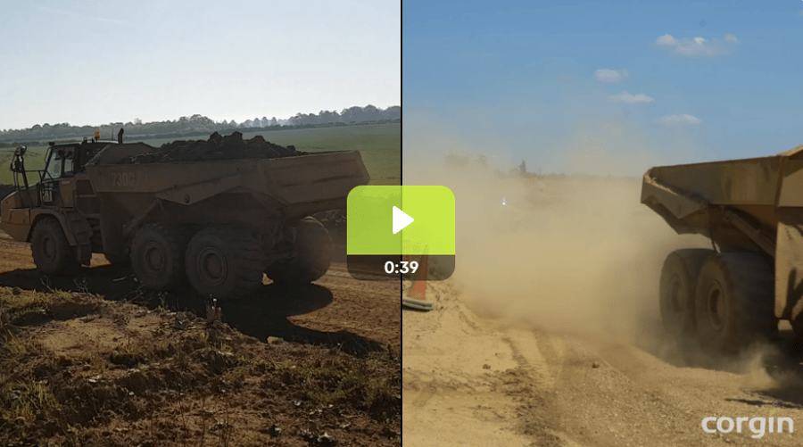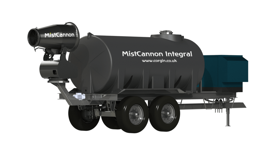 Self-contained, mobile dust suppression unit for controlling large-scale dust emissions on sites where power and water are not close by.